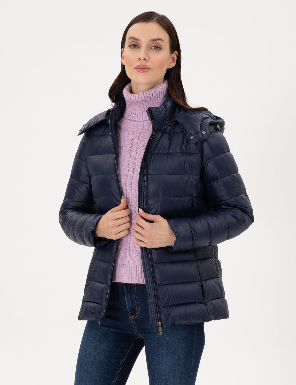 • Lacivert Kap__onlu Kapitone Mont