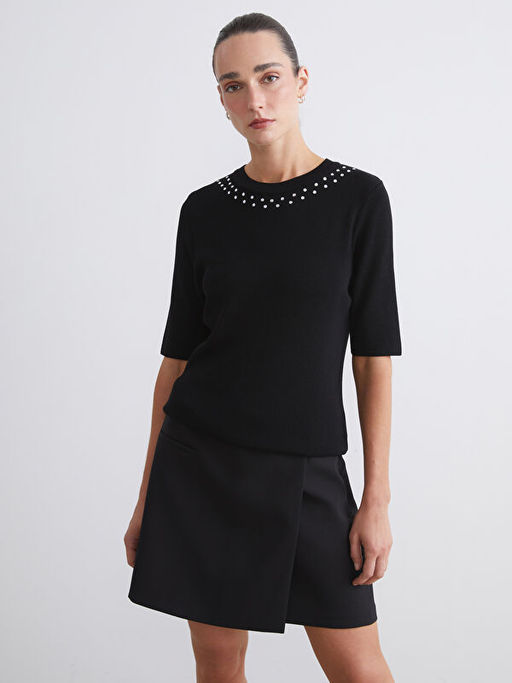 Bisiklet Yaka Ta?l? Kad?n Triko Kazak