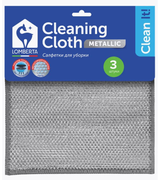 Lomberta, Салфетки для уборки Metallic 3 шт., 1 упак. Салфетки для уборки с металлизированным покрытием мягкие практичные текстильные изделия, которые помогут поддерживать порядок и чистоту. Универсальные салфетки для уборки не деформируются, легко стираются и не впитывают посторонние запахи. Незаменимые помощники для дома или офиса