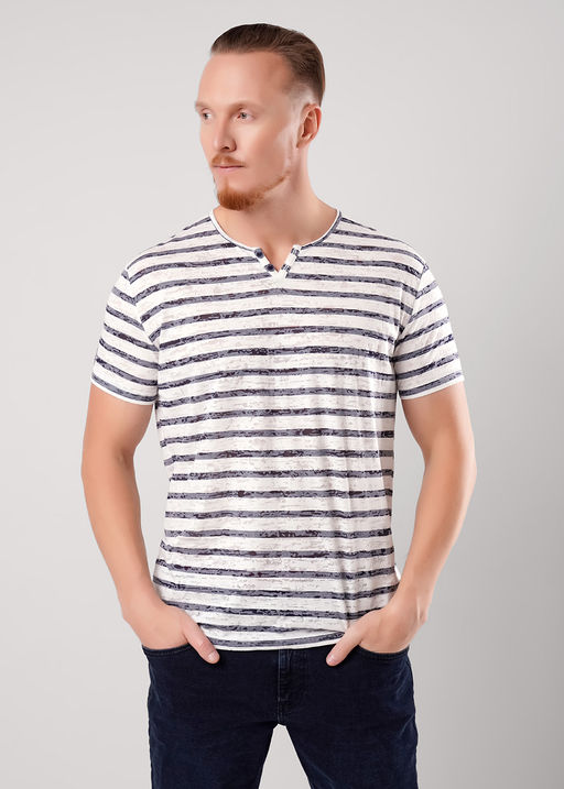 Футболка мужская с круглым вырезом горловины и декоративной планкой с пуговицами, с коротким втачным рукавом. Модель дополнена имиджевой фурнитурой, что делает образ стильным и завершенным. 51% полиэстер, 49% хлопок