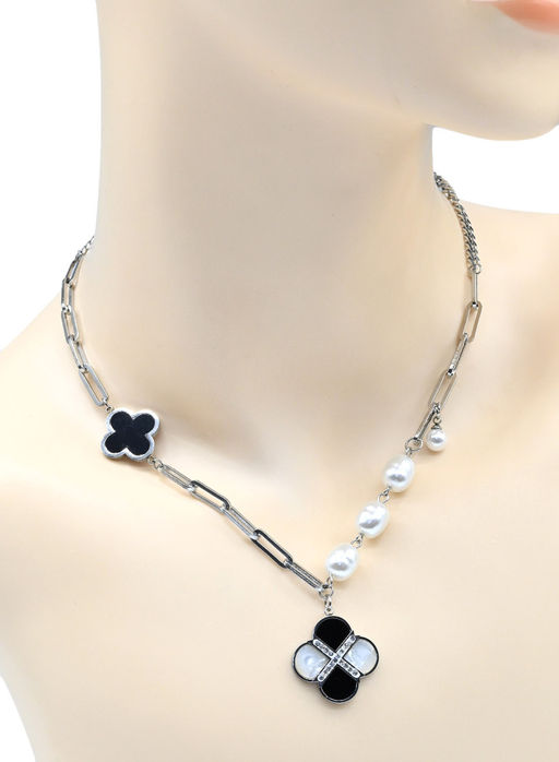 Цепочка с майоркой и подвеской клевер 22мм цв.серебристый, 41см.