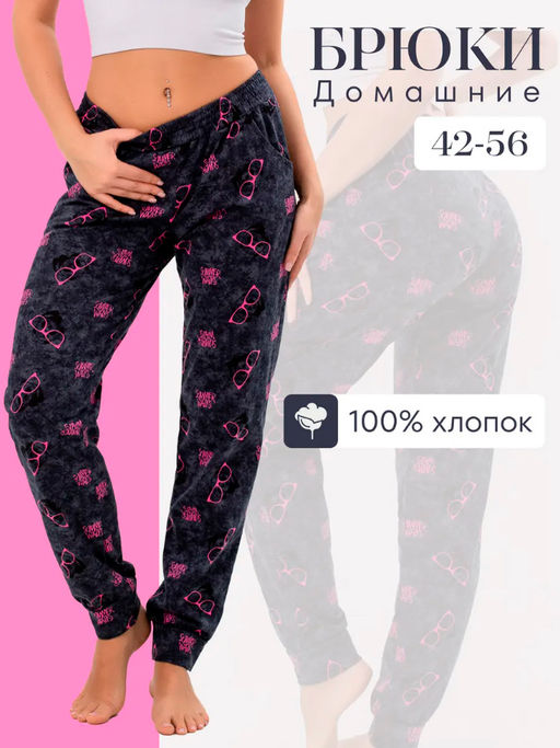 Брюки домашние женские из трикотажа (кулирная гладь, 100 % хлопок) - один из обязательных предметов домашнего гардероба. Для более комфортного использования в пояс вшита широкая резинка с закрепкой на поясной машине. Тип посадки - средняя. Рост универсальный, так как брюки на манжете. Длина по внутреннему шву 79 см. Есть два кармана с отрезным бочком. Эти брюки со свободным кроем не сковывают движений. Универсальная модель подойдёт как для комфортного сна, так и для домашней носки, дачи и спорта. Ткань джогеров слабо поддается растяжению и усадке. Многократные стирки и глажки хлопковые ткани переносят хорошо, долгое время не теряя при этом своих характеристик. Размерная сетка модели 42-56, если нужен больший размер (58-70), рекомендуем артикул б162М. Джоггеры - отличный подарок для всех девушек и женщин. Маме, подруге, бабушке, сестре, коллеге на день рождения или на любой другой праздник! Параметры модели на фото: 90-65-98, рост 165. На модели 44 размер. -- Характеристики -- Вес: 190 кг