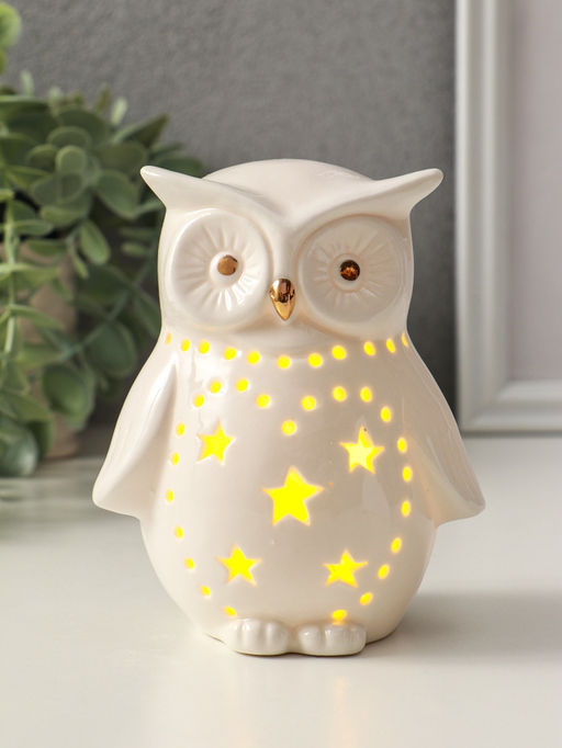 Фигурка светящаяся «Филин в звёздочках», белый, керамика, 10.5×8×12.5 см