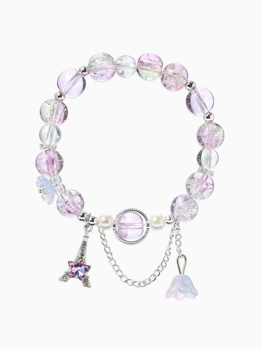 Браслет с подвесками "Сахарный" башня с цветами, шар №10/8, цвет фиолетово-розовый в серебре 10967