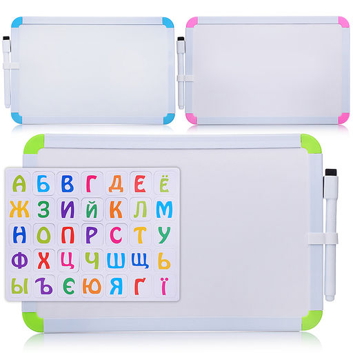 • Одна сторона доски для магнитов другая для рисования фломастерами.