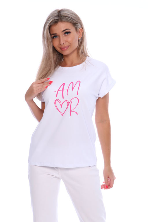 Футболка женская из хлопковой ткани с лайкрой. Ткань держит форму, не вытягивается, приятная на ощупь. Стильная футболка классического фасона со спущенным рукавом. Посадка свободная. Эта базовая модель подойдет абсолютно всем и станет необходимой вещью в вашем гардеробе.