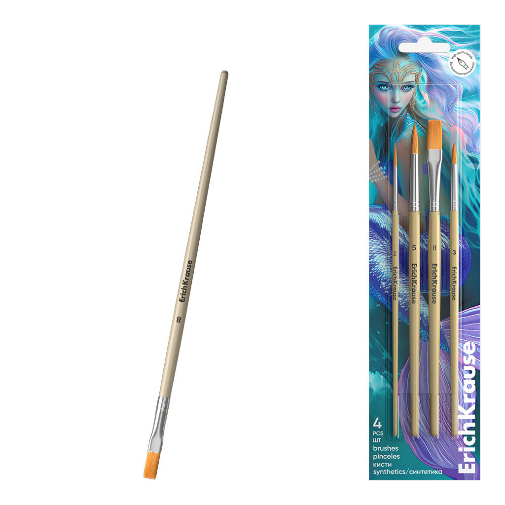 АКЦИЯ Цена за 12 шт. Кисти ErichKrause Aquamarine для акварели и гуаши, синтетика, 4 штуки (в блистере)