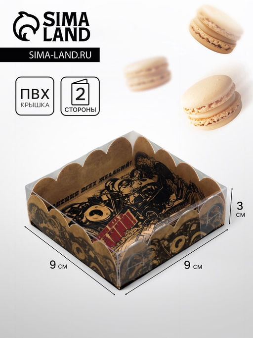 Прочный картон обеспечивает надежную защиту содержимого, а прозрачная крышка позволяет сразу оценить внешний вид угощений без необходимости открывать коробку.