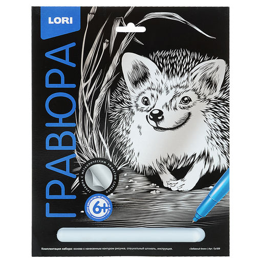 Гравюра большая с эффектом серебро «Забавный ёжик» приятно порадует юных художников!