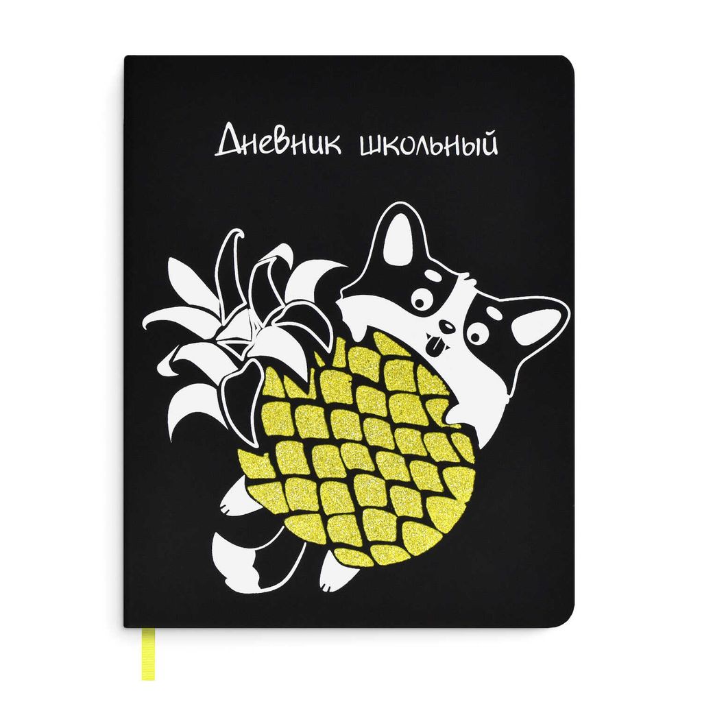 • Дневник школьный арт. 53610 / 15 КОРГИ С АНАНАСОМ (кожзам: А5+; твёрдый переплёт, материал обложки: