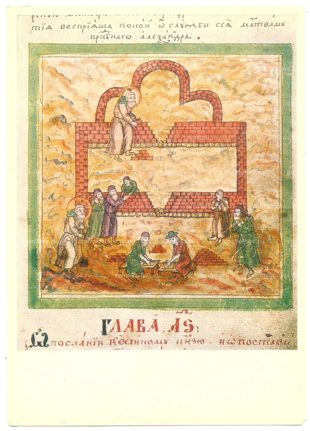 • Открытка Миниатюра Возведение каменной постройки