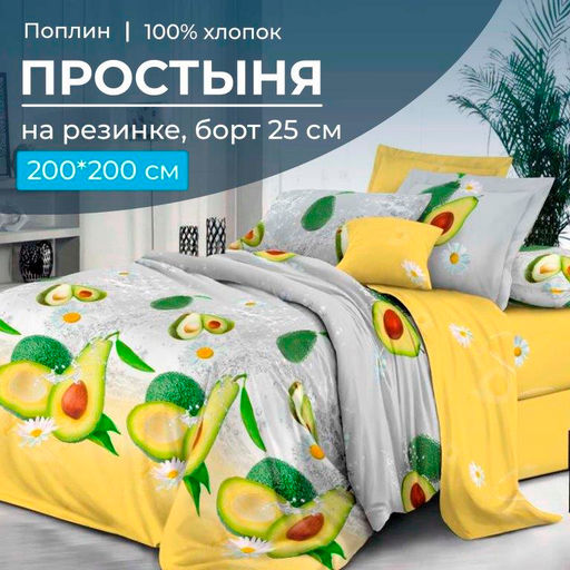 Очень удобная большая Евро простыня на резинке из поплина плотностью ткани 110 г/м2 на спальное место 200*200 см (ширина и длина матраса). Простыня имеет глубокий борт/спуск 25 см. Резинка проходит по всему периметру (кругу) спального места. Простыня из поплина изготовлена из 100% хлопка, который обладает высоким качеством, что гарантирует Вам долговечность и удобство использования. Хлопковая простыня обеспечит приятную прохладу летом и тепло зимой, благодаря своей дышащей и гипоаллергенной структуре. Кроме того, она легко стирается и сохраняет свою форму и качество даже после многих стирок. Выберите качество и комфорт для своего сна с нашей хлопковой простыней на резинке из поплина!Обратите внимание! Простыни сшиты с учетом усадки ткани (с большим припуском по длине и ширине), поэтому необходима предварительная стирка данного швейного изделия. -- Характеристики -- Вес: 680 кг Размерность простыни: Евро на резинке Размер простыни: 200x200 Ткань: Поплин Состав: 100 % хлопок Плотность: 110 г/м2 Плотность плетения: Высокая Режим стирки: При 40 градусах Цвет: Желтый Расцветка: Тейсти Вид принта: Авокадо Целевая аудитория: Взрослая