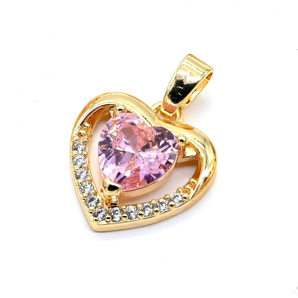 Подвеска Сердечко 13*14мм с цирконом цв.розовый, золотистая Радуга камня