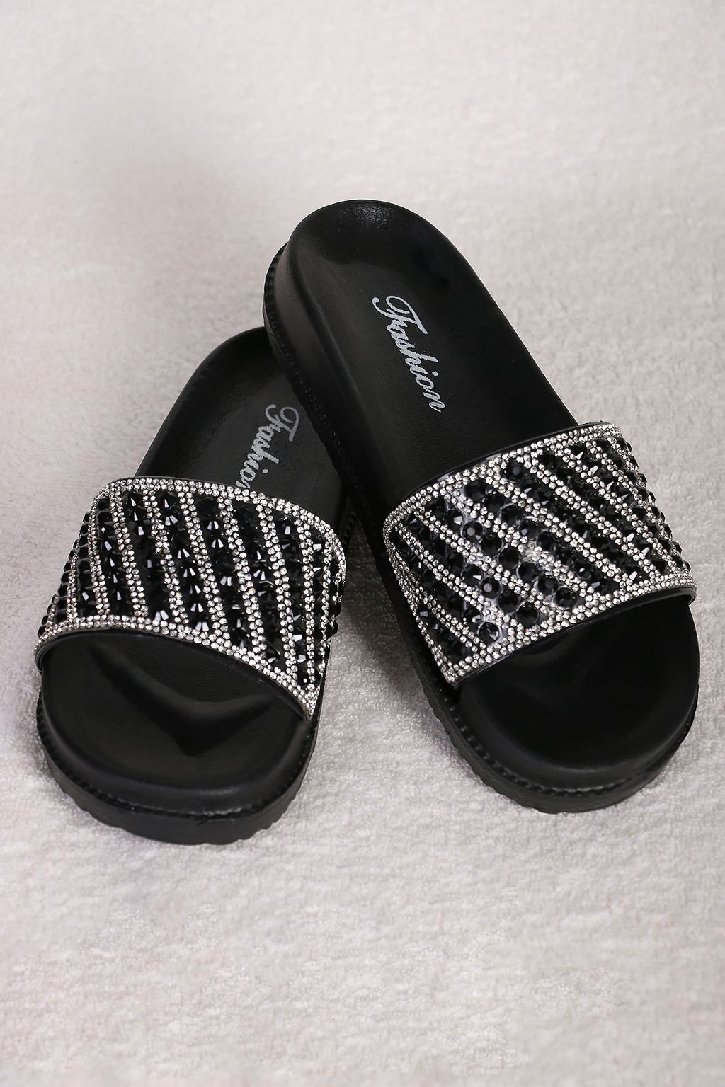 • Шлепанцы со стразами черные
