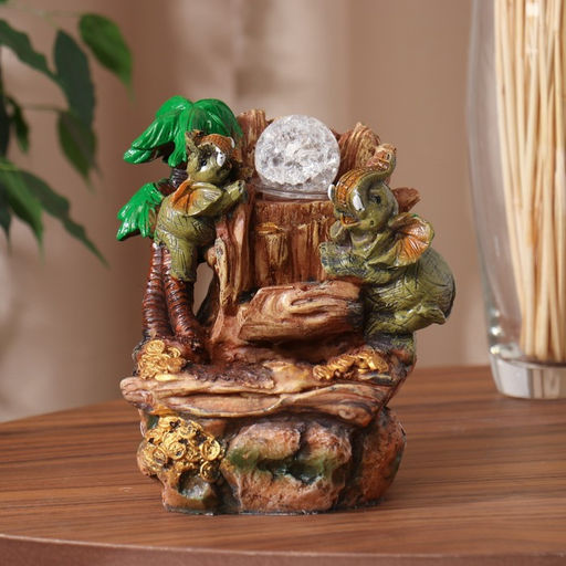 Фонтан настольный «Слоны с монетками, пальма», 20×13 см, с подсветкой