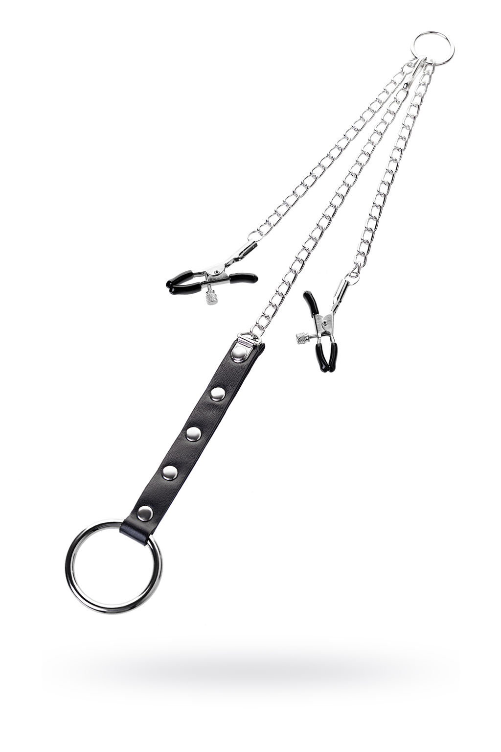 • Зажимы для сосков с кольцом для пениса Metal by TOYFA, серебряные, 60 см