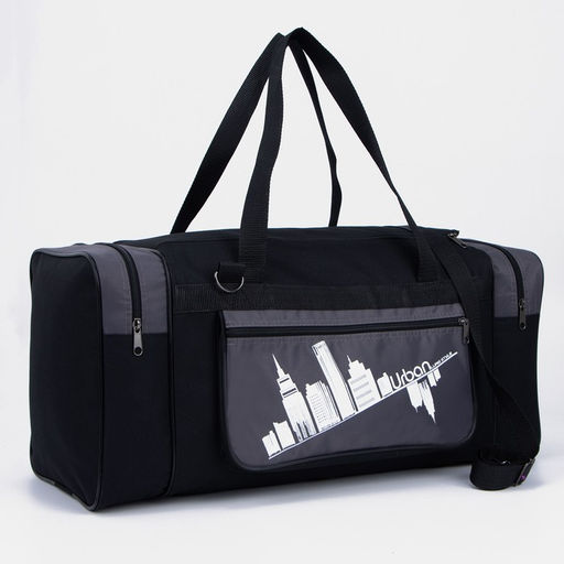 Сумка дорожная, 3 отдела на молниях, наружный карман, длинный ремень, цвет чёрный/серый