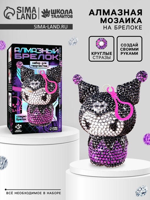Брелок для создания алмазной аппликации «Куроми-зайка» станет увлекательным хобби для взрослых и детей. Изящный аксессуар в виде зайчика можно украсить круглыми стразами, что сделает его стильным дополнением к ключам, сумке или рюкзаку.Как сделать брелокНанесите клей не небольшой участок заготовки. Важно! Рекомендуем не покрывать сразу весь брелок, чтобы клей не засох.Проткните розовую клеевую подушечку стилусом, чтобы создать клеевой слой и легко брать стразы из поддона.Кончиком стилуса подцепляйте стразы по одной штуке из лотка и переносите на участок с клеем.Постепенно смазывая клеем новые участки, покройте весь брелок стразами и оставьте его сохнуть на 12 часов.ПреимуществаПростота в создании: даже новички легко справятся с выкладкой страз.Полное заполнение основы стразами создаёт яркий и завершённый образ.Подходит для детей от 7 лет и взрослых, что делает брелок универсальным подарком.Зайка станет стильным украшением для сумок, ключей и рюкзаков.Изготовлено из прочного пластика, который долго сохраняет внешний вид.Алмазный брелок понравится всем, кто любит творчество, ценит стильные аксессуары и ищет простое и увлекательное занятие. Ребёнок развивает мелкую моторику и усидчивость, а взрослые могут расслабиться после напряжённого дня, занимаясь выкладкой.Украшение алмазами это не только способ самовыражения, но и возможность добавить в повседневную жизнь немного блеска. Заяц станет отличным акцентом для ваших вещей! Ширина, см: 10. Высота, см: 13. Возраст: От 7 лет. Тип выкладки: С полным заполнением. Форма страз: Круглые. Тип основы: Брелок. Бесплатная доставка: Да. Наша разработка: Да. Размеры товара: 13/6/10.