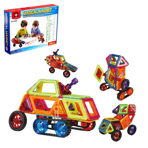Магический магнит это конструктор, детали которого соединяются как по волшебству. Под действием магнитного поля элементы притягиваются друг к другу, открывая неограниченный простор для экспериментов. Из ярких геометрических форм ребёнок соберёт машины, карусели, башни, вертолёты и даже ракеты. Иллюстрированная инструкция подскажет идеи новых моделей и продемонстрирует принципы конструирования, с ней создание фигурок станет проще и увлекательнее.Элементы изготовлены из качественного пластика с использованием безопасных красителей. Детали совместимы с аналогичными наборами серии Magical Magnet, что позволяет делать разнообразные комбинации.В комплекте 98 деталей.Размеры элементов трапеция: 11,8 х 0,8 х 5,7 см; треугольник: 5,5 х 0,8 х 5 см; ромб: 9 х 1 х 5,5 см; квадрат: 6,5 х 0,8 х 6,5 см. Для детей старше 3 лет. Возраст: От 3 лет. Количество элементов: 98. Бесплатная доставка: Да.