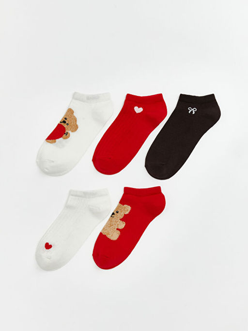Ay? Bask?l? Kad?n Patik ?orap 5li