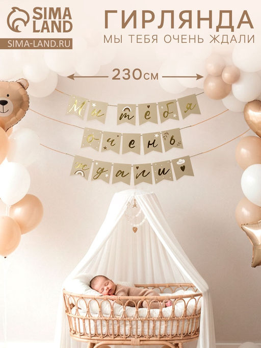 • Гирлянда на ленте «Мы тебя очень ждали», 230 см, бежевая
