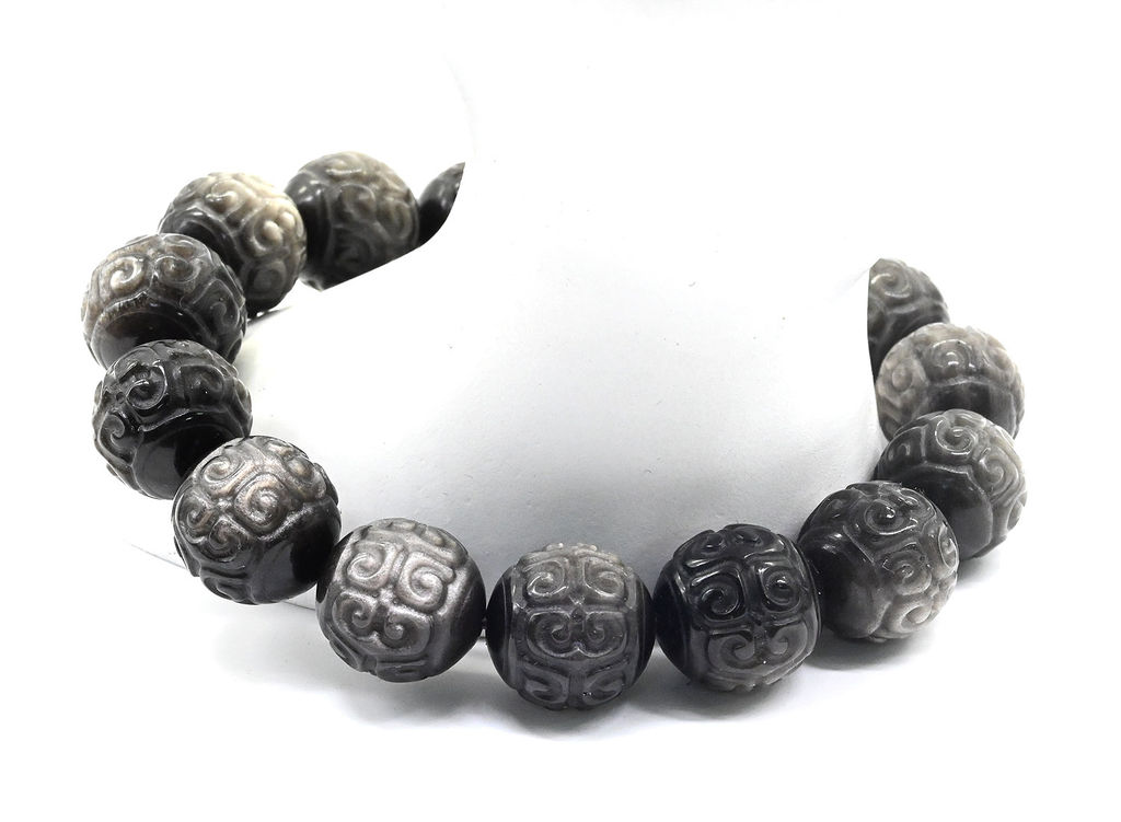 Браслет из Обсидиана шарик резной 14мм, 55г