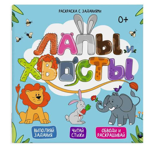 • Раскраска с заданиями арт. 49108 /10 ЛАПЫ И ХВОСТЫ /225х225 мм, 6 л., блок - офсет 120 г/м2, полноцв