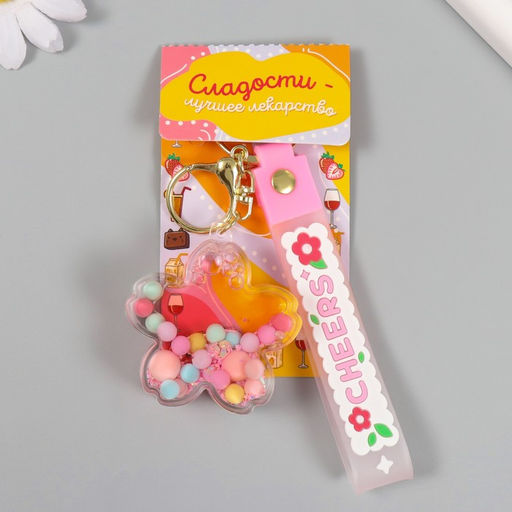 Брелок для ключей на кольце с карабином, ремешком «Цветочек с шариками», водный с декором, 6×6×2 см