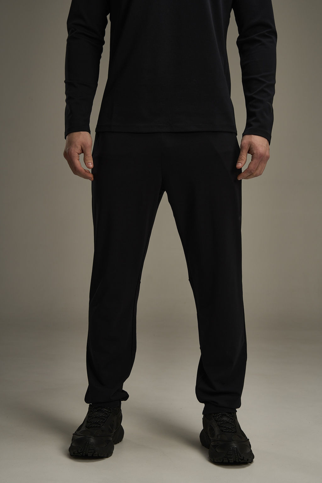 Классический черный цвет помогает легко сочетать брюки с различными элементами верха и спортивной обувью.