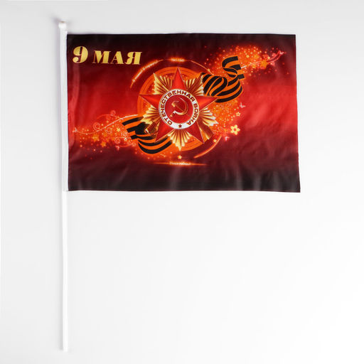 Цена за 12 шт. Флаг «9 мая», 30×45 см, шток 60 см, полиэфирный шёлк