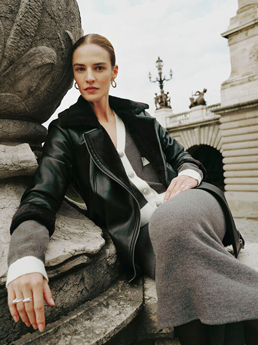 • K?rk Yaka Kad?n Deri G?r?n?ml? Mont