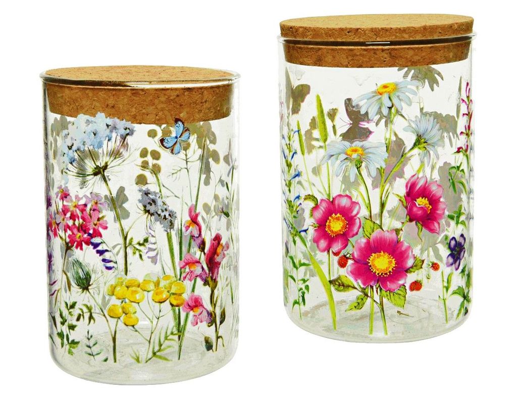 Эти замечательные декоративные банки уже до краев полны позитивом, но в них ещё есть место для сыпучих продуктов! А еще, в тёплый солнечный день, можно разлить по ним какой-нибудь совершенно летний напиток, выйти в сад и пить прямо из банок! Замечательное и практичное украшение для кухни с чудесно-цветочным настроением!   Характеристики: Объем - 0.5 л. Размер - 8х13 см. Материал - стекло. Набор - 2 банки. Цена указана за набор.   Производитель Kaemingk, Голландия. Производство размещено в Китае.
