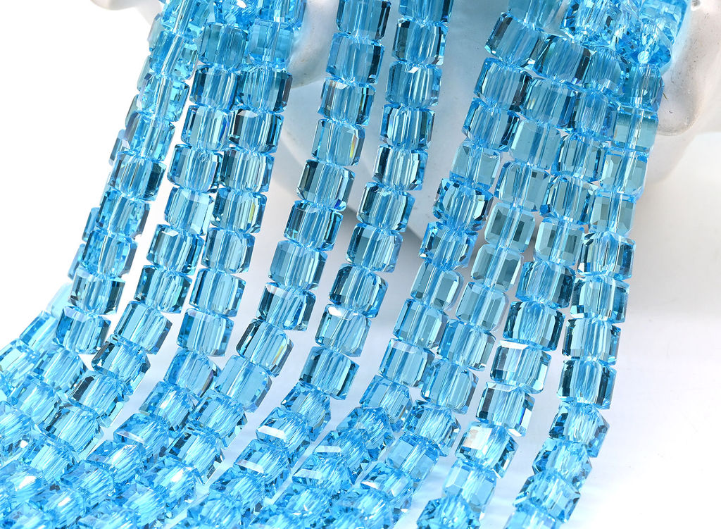Бусины в форме куба, поверхность которых покрыта множеством граней. Это не простые гладкие кубики, а сложные ограненные кристаллы.