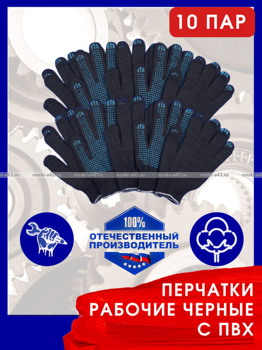 • Цена за 10 пар.Перчатки рабочие хб с ПВХ - 10 класс, 5-и нитка СТАНДАРТ ЧЕРНЫЕ