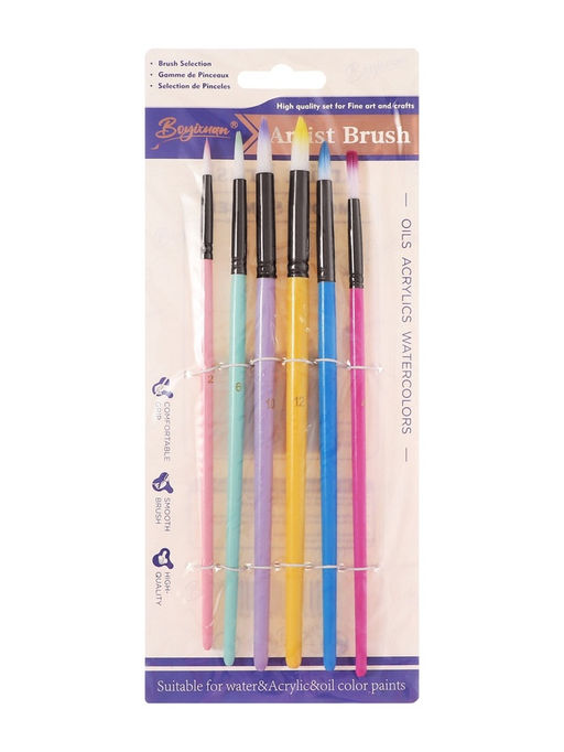 • Набор кистей для рисования, синтетика, 6 штук: № 2, 4, 6, 8, 10, 12, круглые, с цветными ручками, пастель