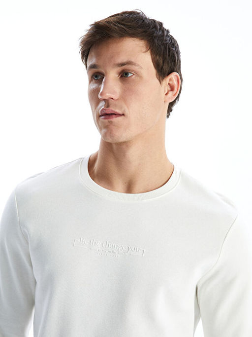 Bisiklet Yaka Bask?l? Erkek Kal?n Sweatshirt