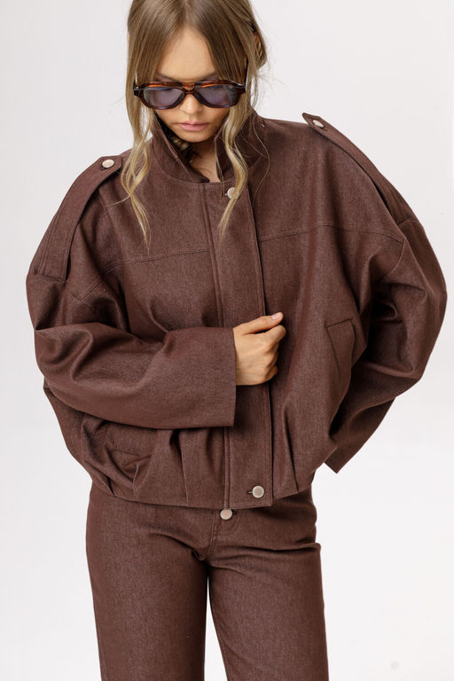 Оверсайз бомбер из хлопкового джинса (приобрести брюки с фото можно по арт. 6576).