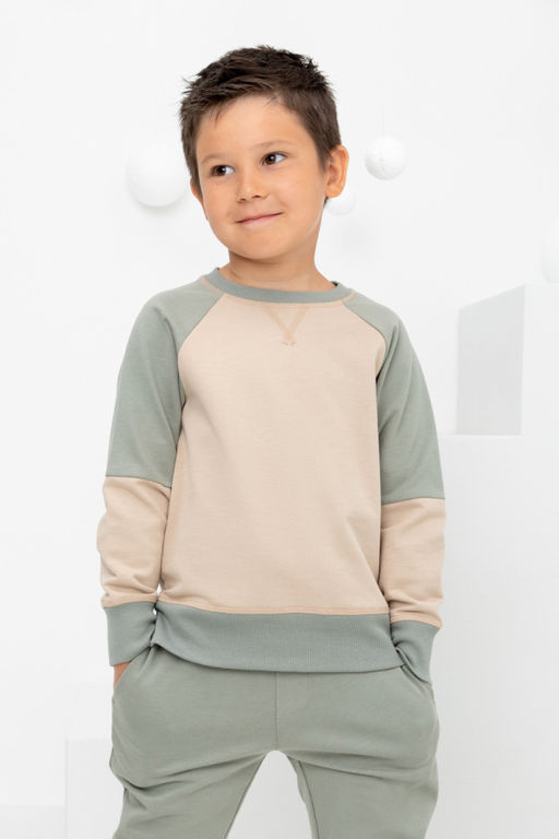 Джемпер для мальчика из мягкого петельчатого футера. У изделия эластичная горловина, рукава-реглан, эластичные манжеты и пояс. Джемпер сохраняет цвет и форму после многократных стирок.­
