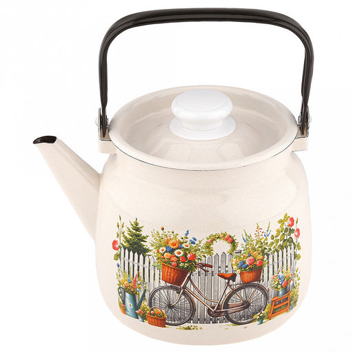 "Романтика" Чайник эмалированный 3,5л, 3,5л, д19,4см, h16,2см, s0,08мм, двойной слой эмалевого покрытия, металлическая крышка с пластмассовой ручкой-кнопкой, металлическая подвижная ручка (Россия)