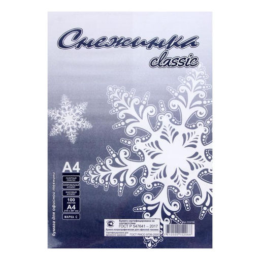 • Бумага А4, 100 листов «Снежинка», 80 г/м², белизна 146% CIE, класс С, в т/у плёнке (цена за 100 листов)
