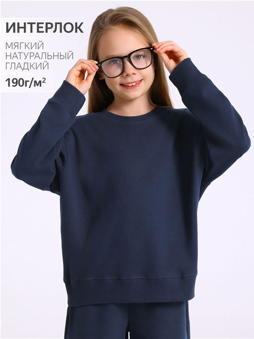 свитшот,хлопок 100%,интерлок / хлопок 100%,темно-синий77 / - / - / - / - / -,Свитшот для девочки из интерлока - тонкого хлопкового полотна. Изделие свободного силуэта со спущенным плечом и поясом по низу изделия. Рукава длинные с манжетами. Уход: только машинная стирка (руками не стирать!) при температуре 40 градусов, без предварительного замачивания.