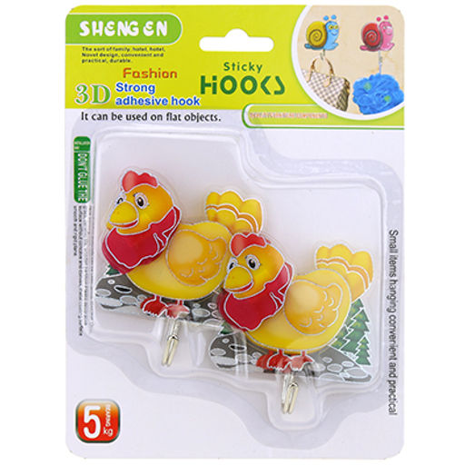 • Крючок на липучке "Курочка ЗD" металлический, ПВХ основание, 2 штуки 7х7,5х2см, в блистере (Китай)