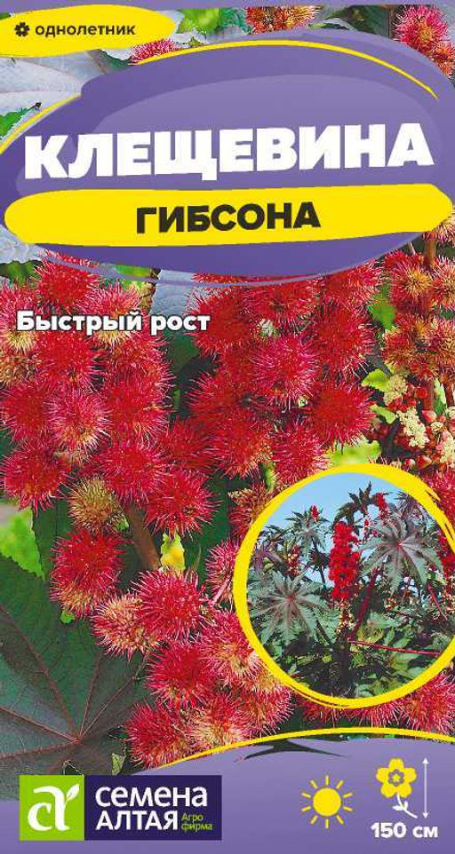 Выращиваемое в однолетней культуре декоративно-лиственное растение впечатляющих размеров. Благодаря энергичному росту, быстро достигает 1,5-метровой высоты. Куст полураскидистый, с крупными пальчатыми листьями на длинных черешках. На фоне темной зелени листьев, имеющих металлический блеск, контрастно смотрятся красные жилки. Цветение не яркое, но очень эффектно смотрятся красные шиповатые плоды-коробочки. Благодаря оригинальному внешнему виду и размерам, растение находит применение как яркий акцент в садовых композициях и сольных посадках. Сеять клещевину можно в мае сразу в открытый грунт. Семена перед посевом обязательно скарифицируют, и на 10-12 часов замачивают в растворе Эпина. Чтобы получить более мощное растение, выращивают через рассаду. Посевы проводят в марте-апреле в большие торфяные горшочки, наполовину заполненные рыхлым садовым грунтом, по 1-2 семени в горшок. Глубина заделки 1,5-2,5 см. Всходы появляются через 5-7 дней. Для получения более плотного кустика рассаду переносят в светлое прохладное место с температурой +15-18C. Подрастающей клещевине постепенно подсыпают землю, и горшок наполняется до краев. Высадка рассады в открытый грунт в июне, посадочный интервал 1-1,5 м.