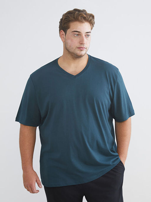 • B?y?k Beden V Yaka Penye Erkek Ti??rt