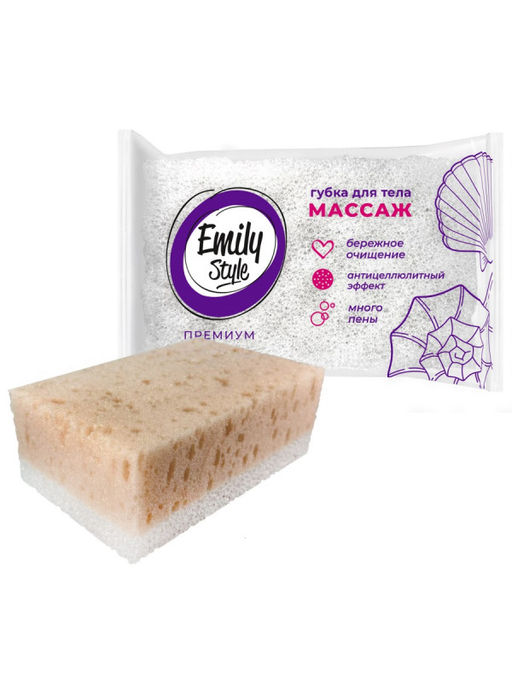 • Emily Style Premium Губка д/тела МАССАЖ, прямоугольная (14*9*5см), 1шт /арт-5200/
