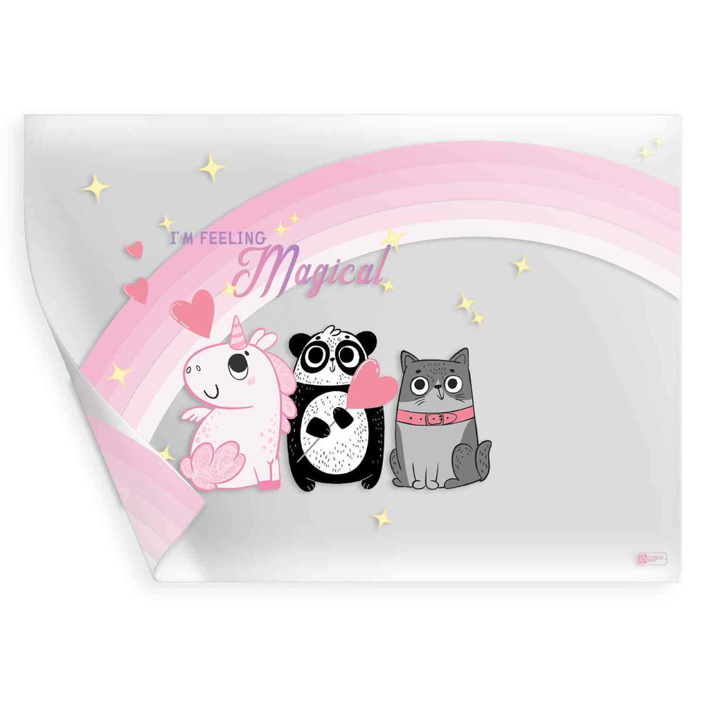 Плёнка цветная для школьных уроков труда арт.69113/ 200 ЕДИНОРОГ, ПАНДА И КОТ (50х70 см, серый, розо
