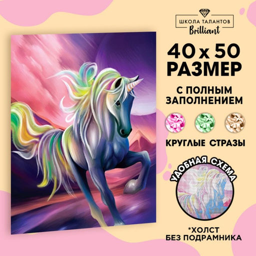 • Алмазная мозаика с полным заполнением на холсте «Единорог», 40×50 см