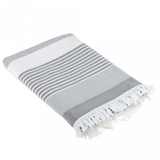 • Полотенце махровое "Полосатый рейс" 70х140см, хлопок 100%, с бахромой, серый (Китай)