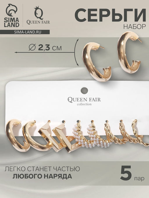 • Набор серег 5 пар QF «Леди» линии, цвет белый в золоте