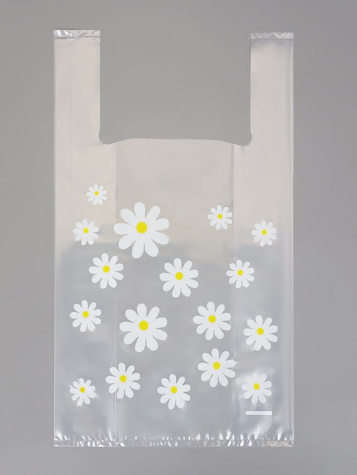 Цена за 20 шт. Пакет подарочный полиэтиленовый, с боковой складкой «Ромашки», 26×43+14 см ± 5%, 60 мкм